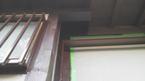 アルミの窓枠と屋根裏、柱は塗装済み